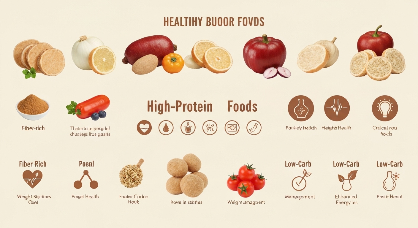 ① 식이섬유↑ ② 단백질↑ ③ 정제 탄수화물↓ 조합이 기본입니다. 이 조합은 혈당 상승을 완만하게 하고 포만감을 늘리며, 심혈관·면역·뼈 건강에도 유리합니다.